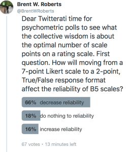 The other thing we can do instead of running complex models on inadequate data is do an experiment. And I don’t mean the easy experiments we run on undergrads. I mean like the economists do–if the economists are interested in whether change in grit makes a difference, they design a high powered intervention, collect long-term outcome data that are preferably objective-ish (e.g., GPA; Alan et al, 2019). This might seem like crazy talk, but it’s not. The reality is if we want to really test whether self-esteem has a causal relation to loneliness, the ideal test to do is an experiment done at scale like the economists do. Yes, yes, I understand that this is unreasonable for the lone researcher at the typical psychology program in the US. But, it is the right design. I’d rather spend 5 years working in a collective to do the correct study than read the 20 vignette studies run on undergrads using self-reported outcomes that we would do in the meantime.