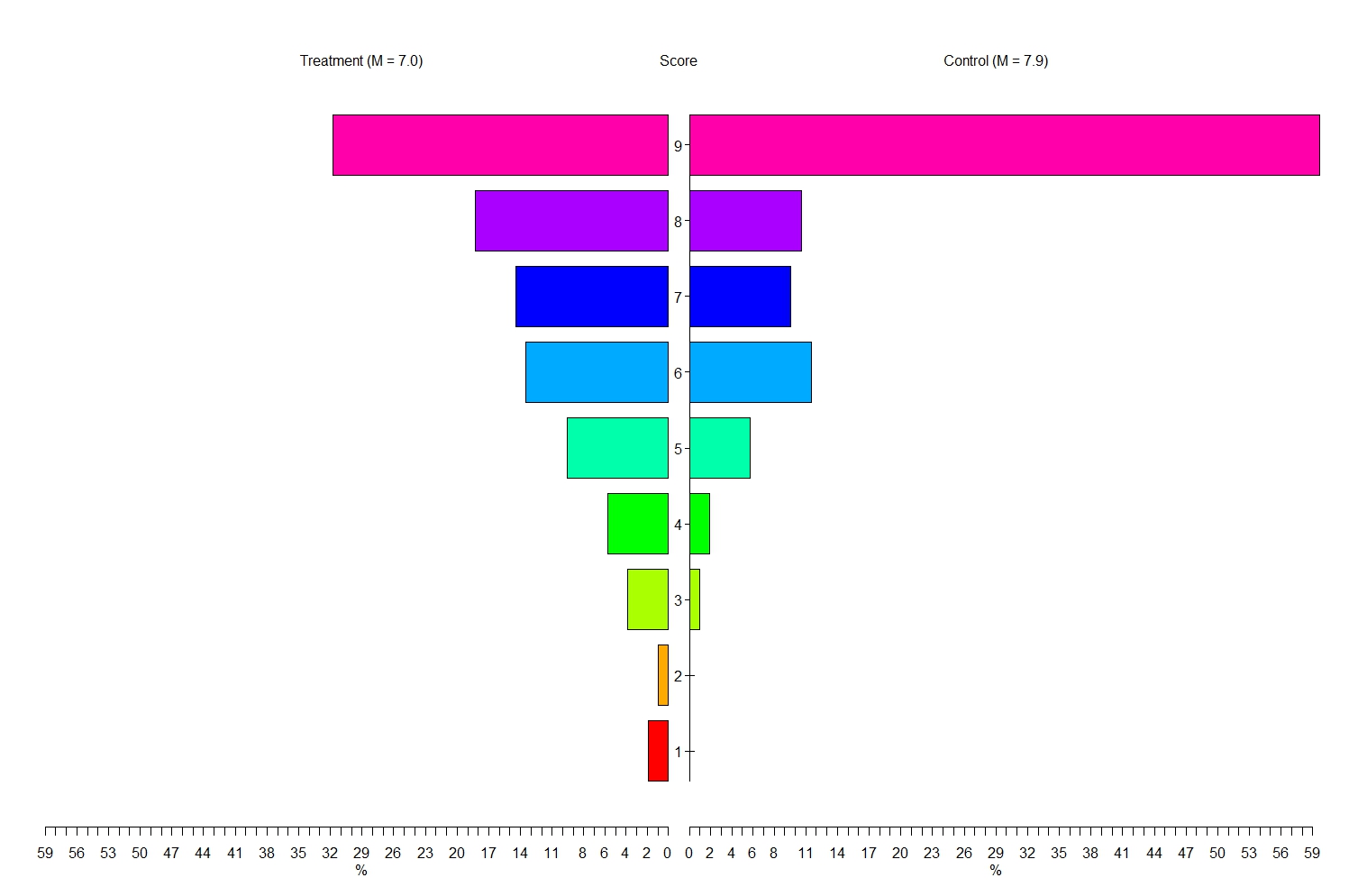 - Although it is possible to make the effect undetectable by compressing the scores, this requires either (a) that we assume the actual effect size is much smaller than what was originally reported or (b) that the scores be compressed so tightly that 80% or more of participants endorsed the highest response or (c) that the effect work in the opposite direction of what was expected (i.e., that the manipulation pushes scores upwards towards rather than away from the ceiling).