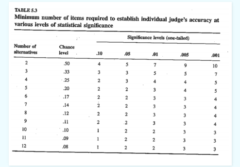 MF: Well, when I’m thinking about dependent variable selection, I tend to start from the idea that the more response options for the participant, the more bits of information are transferred. In a standard two-alternative forced-choice (2AFC) experiment with balanced probabilities, each response provides 1 bit of information. In contrast, a 4AFC provides 2 bits, an 8AFC provides 3, etc. So on this kind of reasoning, the more choices the better, as illustrated by this table from Rosenthal & Rosnow’s classic text: